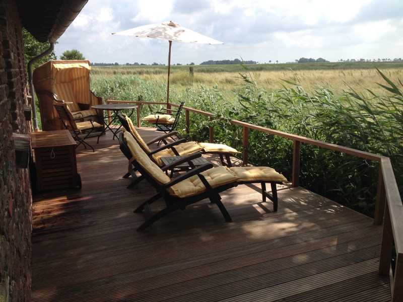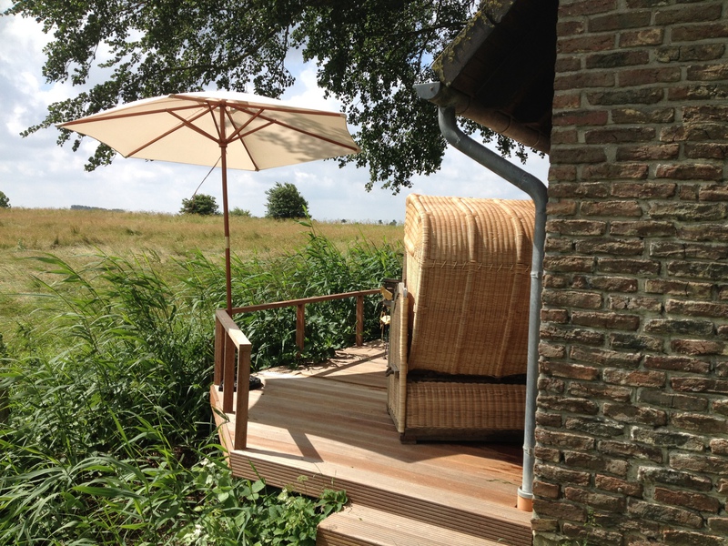 - Holzterasse, Strandkorb, Teakholzgartenmöbel